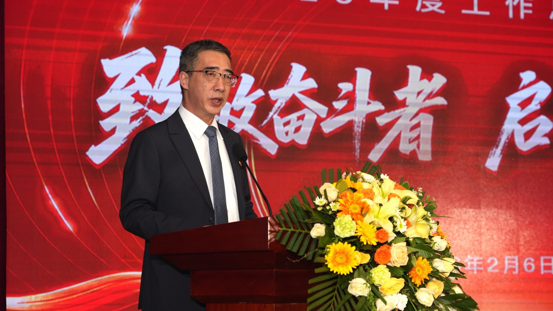 笃行铸华章,聚力向新程。医院党委书记郑晓锋致辞。首先,他向一直以来关心和支持医院发展建设的各级领导、各界朋友,向心系医院发展的离退休老领导、老专家、老同志,向信任医院的各位患者及家属,向默默奉献在一线的全体职工及家属致以新年的问候和美好祝福!并致以真挚的感谢与崇高的敬意!向受表彰的先进集体和个人表示祝贺。他指出,2025年是“十四五”圆满收官、开启新征程的关键一年,在省委省政府、省卫健委的正确领导下,医院领导班子团结带领全体职工,牢记习近平总书记殷殷嘱托,胸怀“国之大者”,锚定健康优先发展战略,在诊疗服务提质增效、学科建设创新突破、管理机制优化升级等方面取得了令人瞩目的成绩。郑晓锋书记全面回顾了医院一年来的奋斗历程与辉煌成就,深刻总结了宝贵经验,并对新一年工作提出殷切期望。他鼓励全体同仁以更加奋发有为的精神状态,埋头苦干、真抓实干,奋力推动医院各项事业再上新台阶。