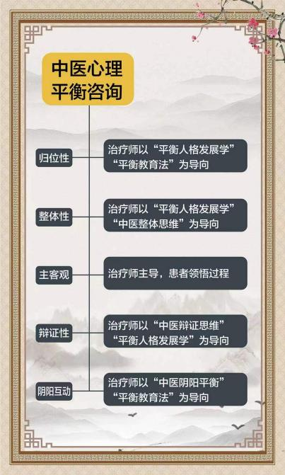 平衡沟通疗法源于中医的《黄帝内经·素问·阴阳应象大论》和传统文化的一些理念为核心基础,应用现代心理学的一些技巧打造的一套关系融合的疗法,它在关系解决中没有针对性,更多的是关注相互动态平衡,找失衡的点,关系的融合等,在关系解决过程中符合中国人的思维模式,更能够理解与接受。
