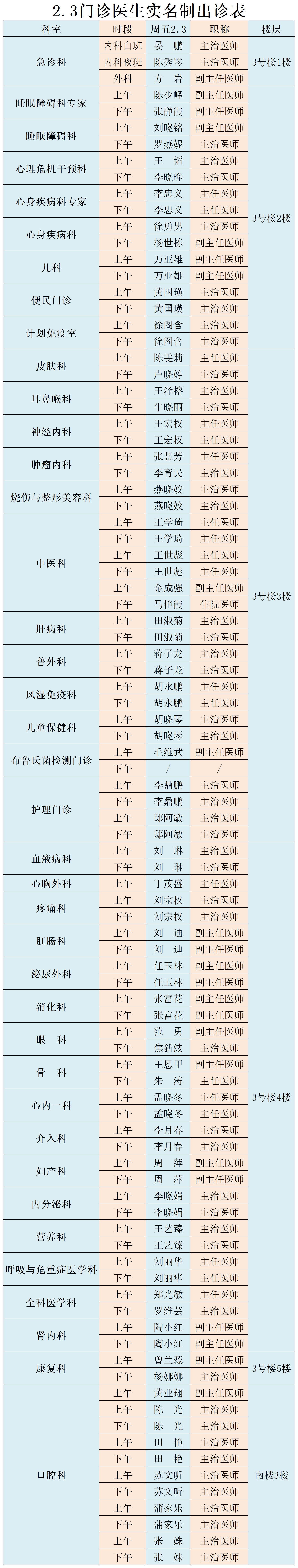 甘肃省第二人民医院、西北民族大学附属医院2月3日(星期五) 门诊出诊信息