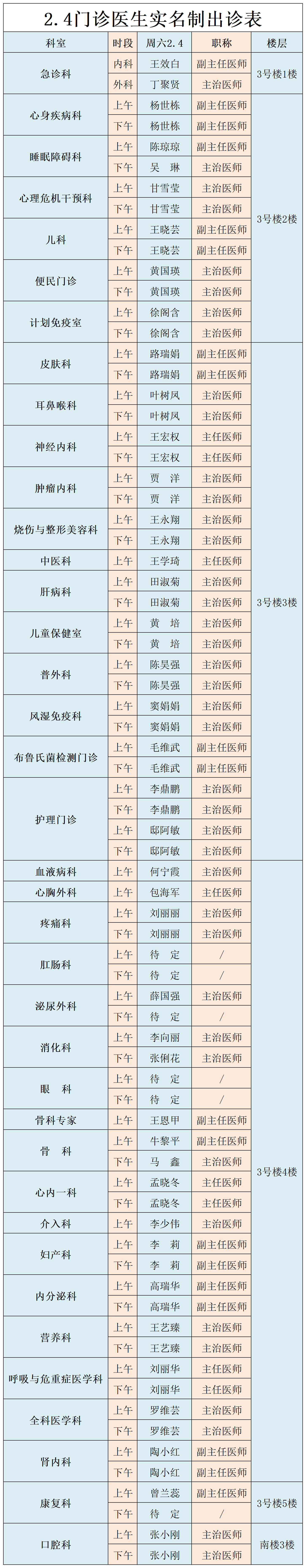 甘肃省第二人民医院、西北民族大学附属医院2月4日(星期六) 门诊出诊信息