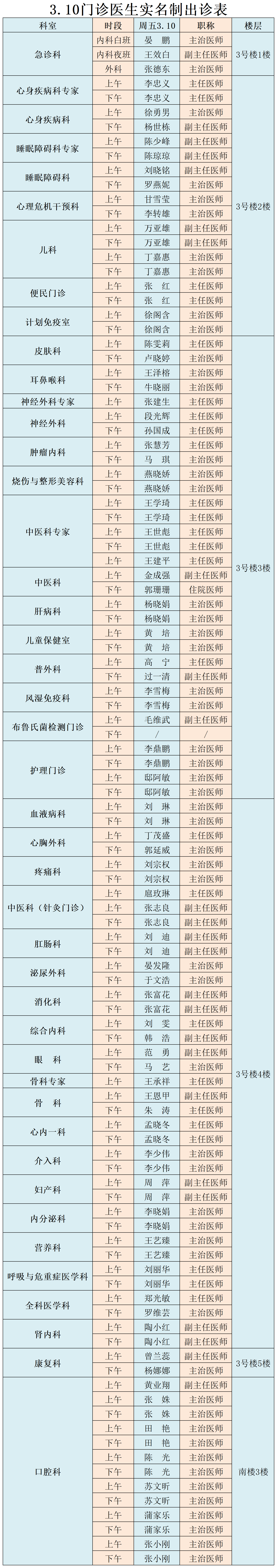 甘肃省第二人民医院、西北民族大学附属医院3月10日(星期五) 门诊出诊信息