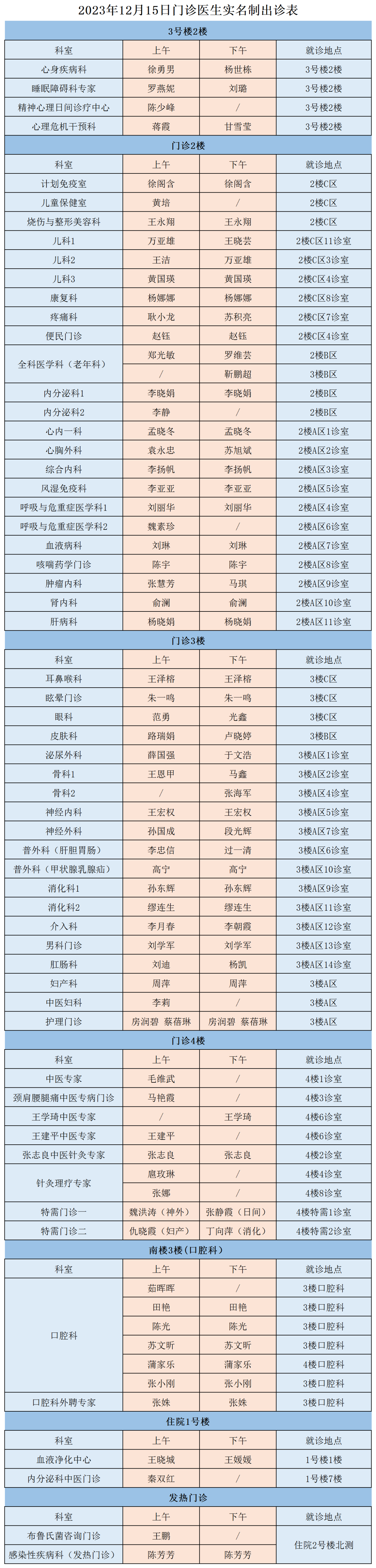 甘肃省第二人民医院、西北民族大学附属医院12月15日(星期五)门诊出诊信息