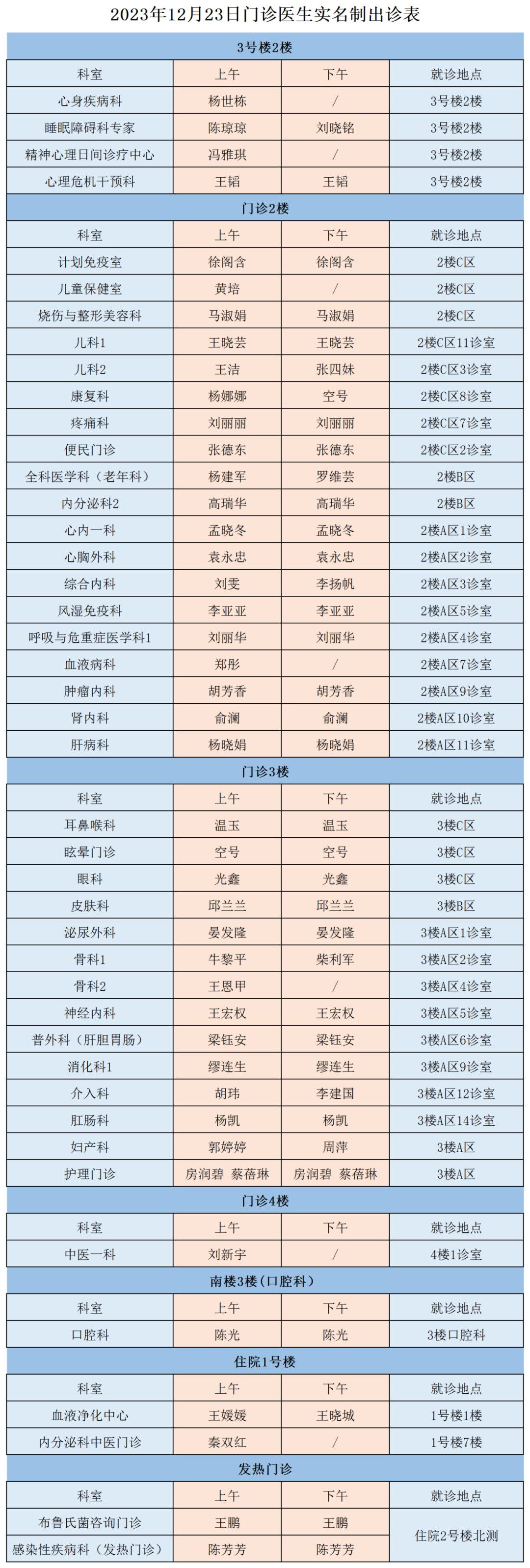 甘肃省第二人民医院、西北民族大学附属医院12月23日(星期六)门诊出诊信息