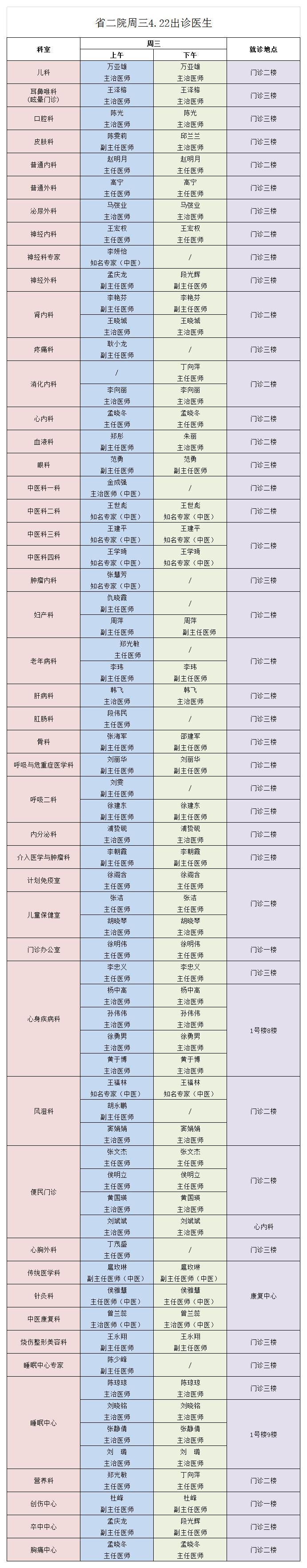 西北民族大学附属医院、甘肃省第二人民医院4月22日(星期三) 门诊出诊信息