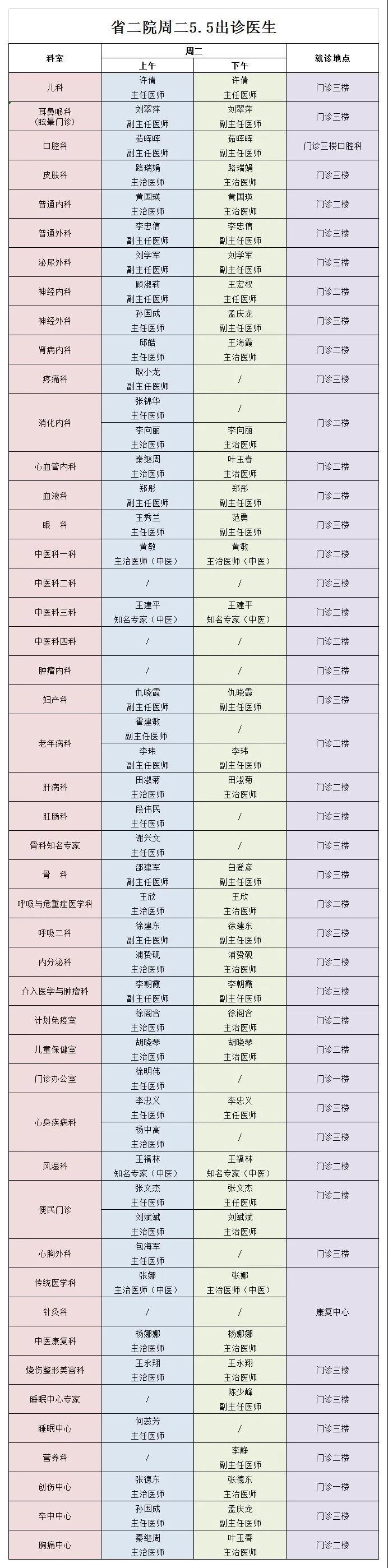 西北民族大学附属医院、甘肃省第二人民医院5月5日(星期二)门诊出诊信息