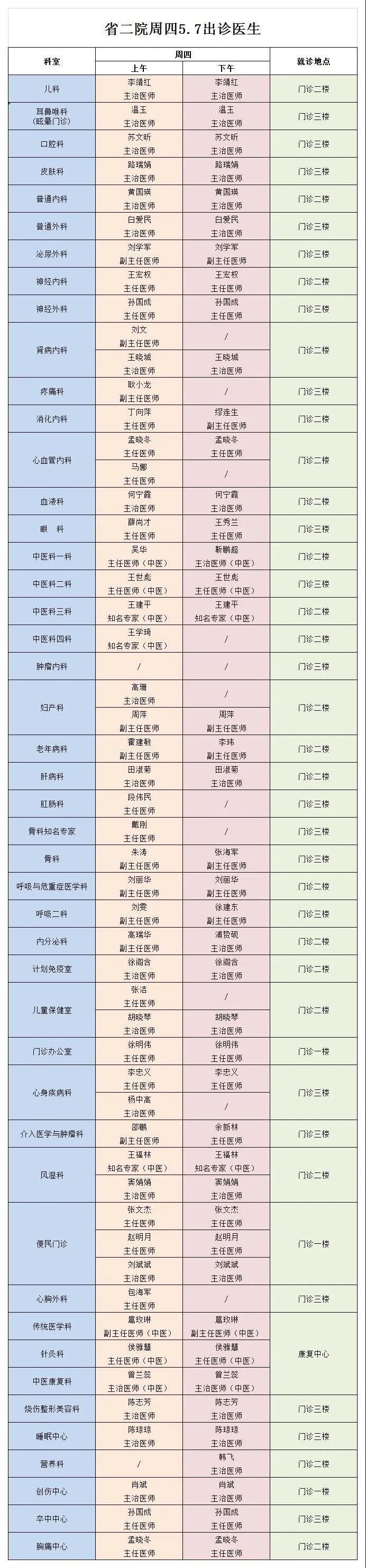 西北民族大学附属医院、甘肃省第二人民医院5月7日(星期四) 门诊出诊信息