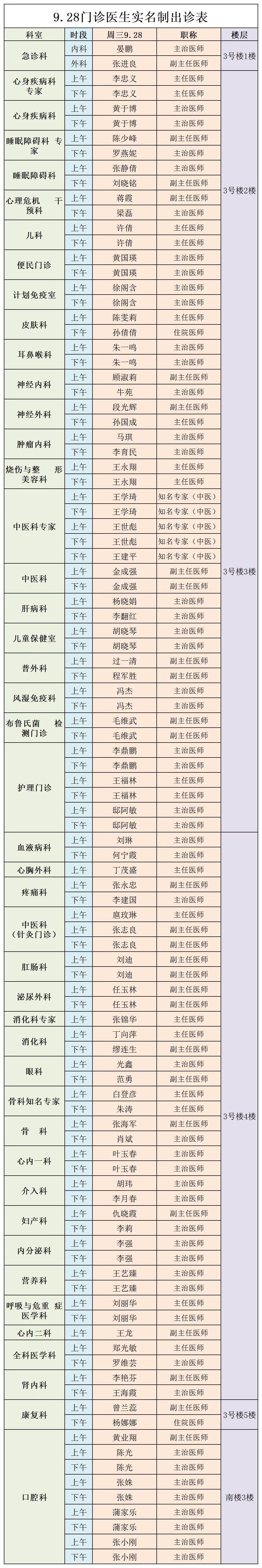 甘肃省第二人民医院、西北民族大学附属医院9月28日(星期三)门诊出诊信息