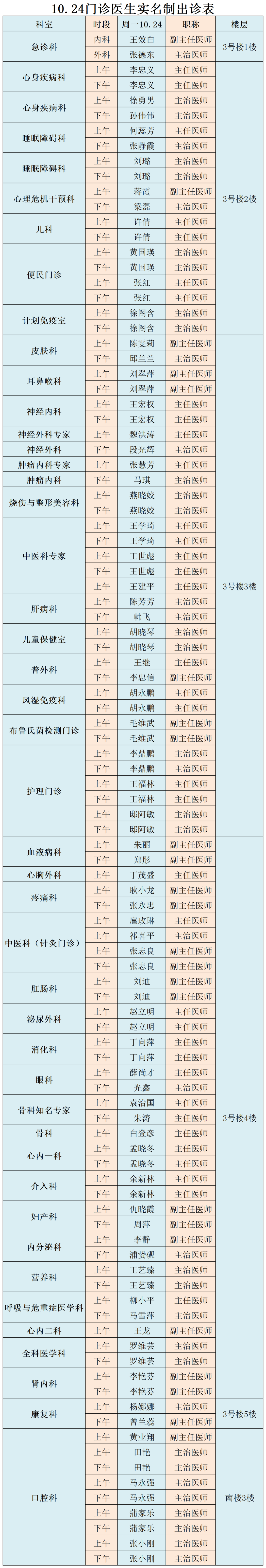甘肃省第二人民医院、西北民族大学附属医院10月24日(星期一) 门诊出诊信息