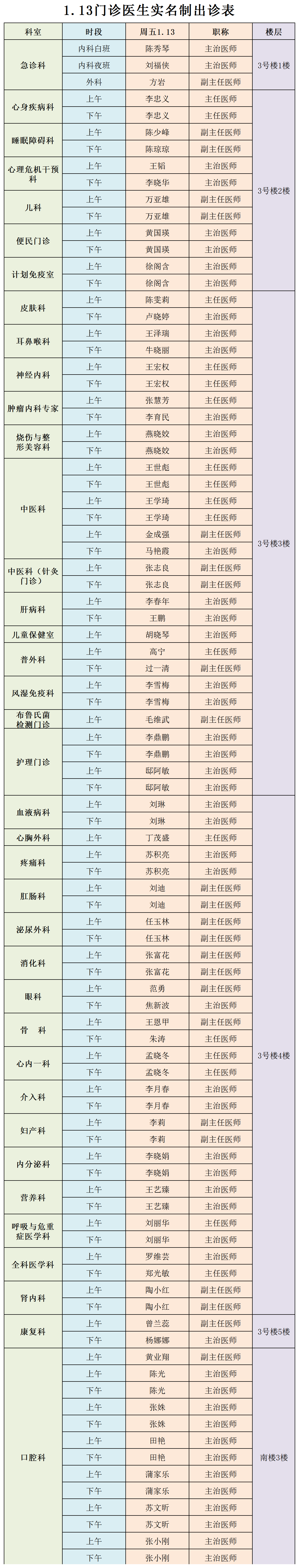 甘肃省第二人民医院、西北民族大学附属医院1月13日(星期五) 门诊出诊信息