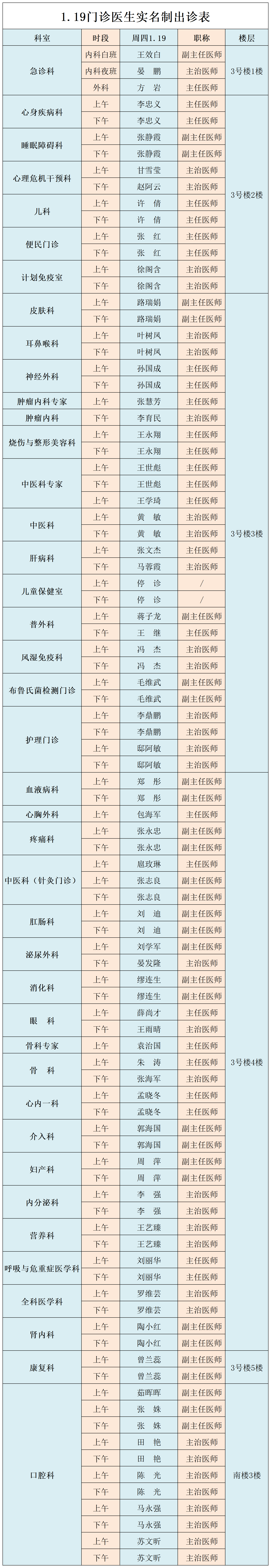 甘肃省第二人民医院、西北民族大学附属医院1月19日(星期四) 门诊出诊信息