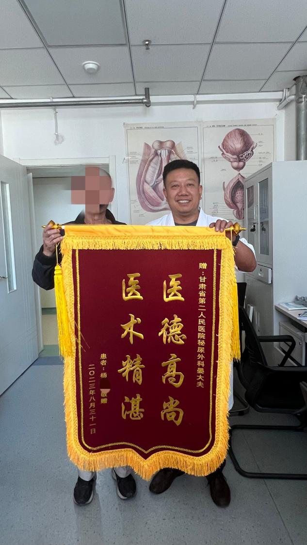 8月31日,当大家都有条不紊的工作时,患者将一面写着“医德高尚,医术精湛”字样的锦旗送到了省二院泌尿外科门诊,表达了对晏发隆主治医师的感激之情,对他的精湛的医疗技术竖起了大拇指。