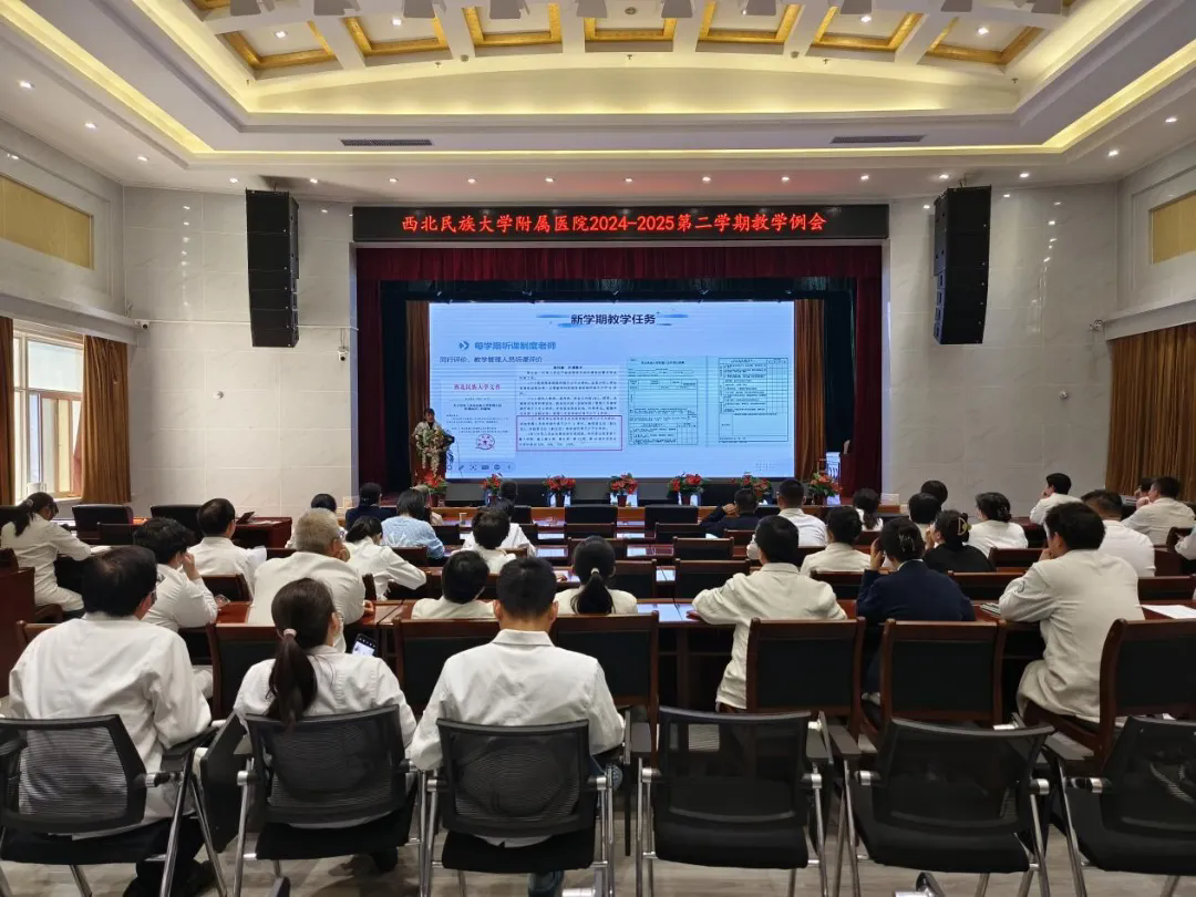 为进一步提升临床教学质量,推动医学人才培养工作高质量发展,2月25日下午,西北民族大学附属医院召开2024年新学期教学工作例会。党委书记郑晓锋、副院长周云松及各教研室主任、教学秘书、任课教师等50余名教学骨干参加会议。