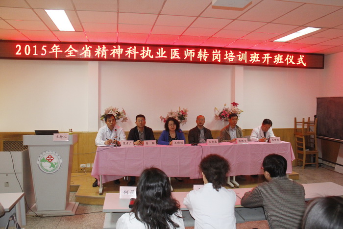 为进一步加强我省精神卫生专业人才队伍建设,提高我省严重精神障碍患者的诊疗服务水平,逐步建立健全全省精神卫生防控体系,为甘肃省精神卫生工作储备人才。根据省卫生计生委关于《甘肃省2014年严重精神障碍管理治疗项目实施方案》的有关要求,5月4日,全省首届精神科执业医师转岗培训班在甘肃省二院(甘肃省精神卫生中心)开班。省卫计委疾控处处长王晓娟、医政处处长王彦成、省二院院长米登海以及51名来自全省各市、县医疗单位从事精神卫生相关专业人员参加了培训开班仪式。省二院党委书记夏彦广主持。