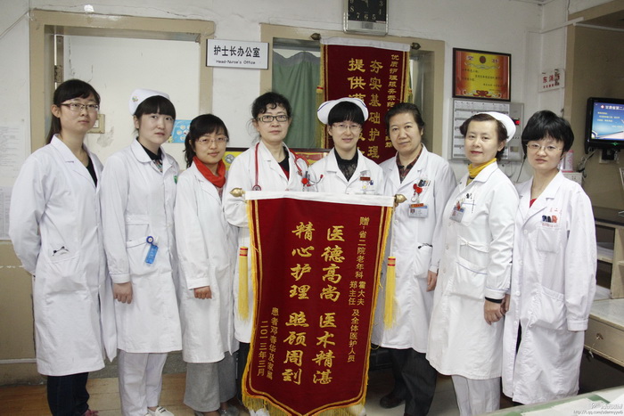 #医患之声#(27)【 赞老年科】省二医院老年科,争创一流亮点多;悉心医疗祛病痛,精心护理细操作;感谢锦旗满墙挂,患者赞美在心窝;主任带头走在前,以身作则胜教説;蜡疗拔罐又刮痧,中医室是花一朵;节假不休奉献多,昼夜不分真忙活;敬业爱岗境界高,该为她们唱赞歌。患者: 赵长让