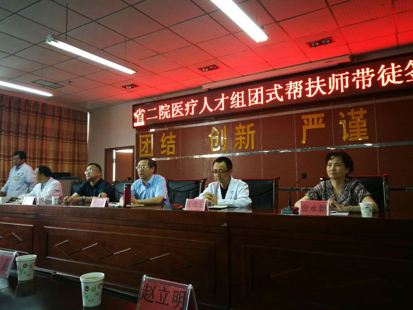 省二院高度重视帮扶单位的人才培养和人才梯队建设,在人才培养方面,采取多种方式,此次师带徒工作明确了传、帮、带的时间和目标以及期满后进行考核评定等内容。第一批师带徒共结成师徒6对,分别为腹部外科、腔镜专家崔伟主任医师与县医院解岩平、陈锦医生,泌尿外科专家赵立明主任医师与县医院虎振中医生,影像专业专家张荃主任医师与县医院杨延海医生,儿科专业专家毕沛与县医院邓金萍医生,高危产科专业专家张晶主任与县医院王勤医生。