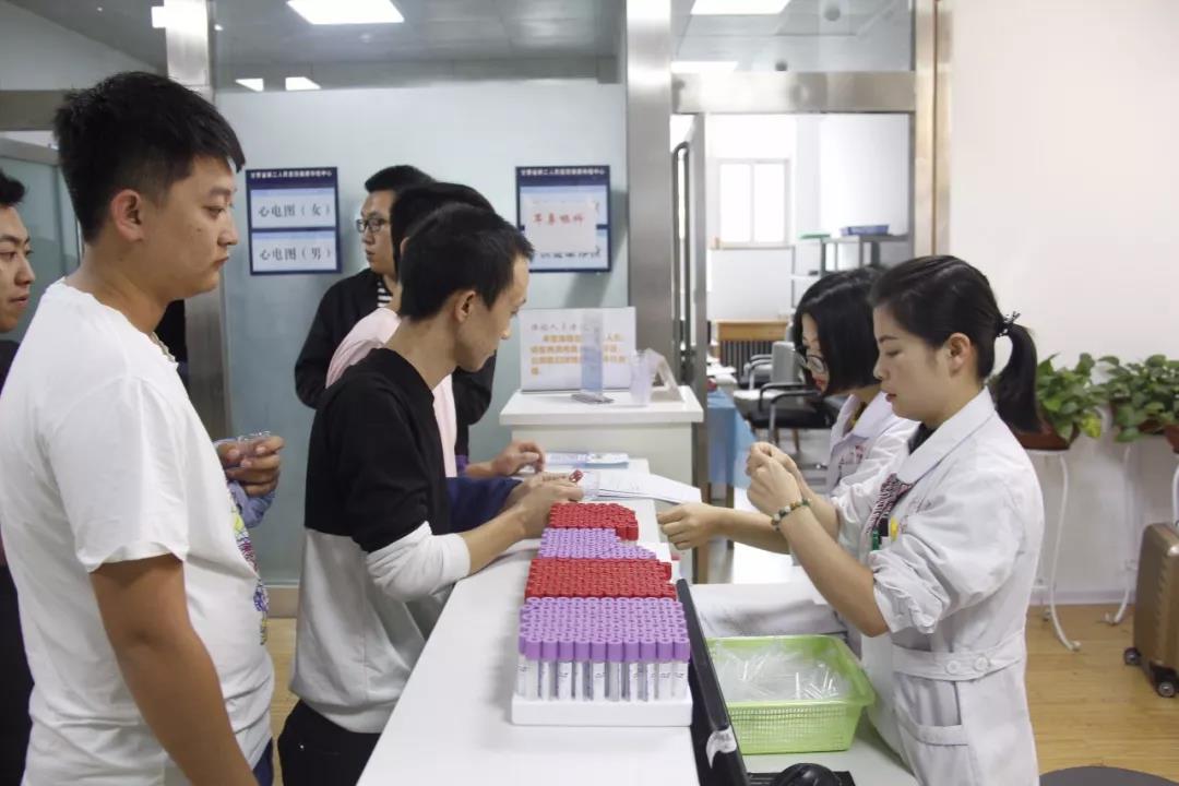 7月9日,早上五点五十分,省二院健康管理中心医护人员身着白大褂,在门诊前迎接参加体检的学生,进行有序的排队分检。体检现场,抽血、测血压、做心电图……体检工作严格、公平、公正的进行,参与体检的医护人员对传染性疾病严格把关,对精神类疾病认真甄别,对难以治愈的慢性病和器质性病变仔细筛查。按照谁体检、谁签名、谁负责、主检医师负总责的原则,从6:40到11:40,省二院健康管理中心仅用了5个小时高效、圆满的完成了此次大规模体检工作。