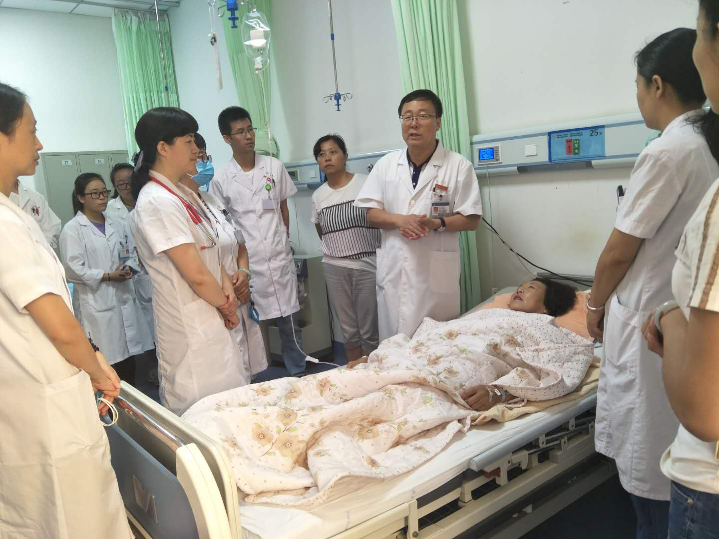 2018年8月9日,省二院消化内科收住一名来自基层的特殊病人。患者66岁女性,于10天前入住省二院消化科,在当地医院行胃镜检查提示食管隆起性病变,病检提示食管高分化鳞状细胞癌,随后患者就诊于省级某三甲医院,再次行胃镜及病检提示食管中段鳞癌,超声内镜检查提示病变处粘膜层及粘膜肌层增厚,胸部增强CT提示食管中段管壁增厚,双肺纤维索条灶,该院消化科认为内镜下切除风险非常高,手术难度极大,并建议至胸外科行食管癌根治术。胸外科与家属讨论考虑开胸手术创伤大,如果能够内镜下切除对患者的恢复、创伤更有价值。几经周折,患者和家属找到我院消化科张锦华主任医师处就诊,张锦华主任医师就患者病情及手术难度,术中风险向患者及家属告知,并表示愿与患者及家属一道承担风险、抗击病魔。患者入住消化科后,积极完善术前准备,消化科全体医师就患者病情进行术前讨论,对术中、术后各种并发症及风险予以预判,并制定严密的治疗措施。