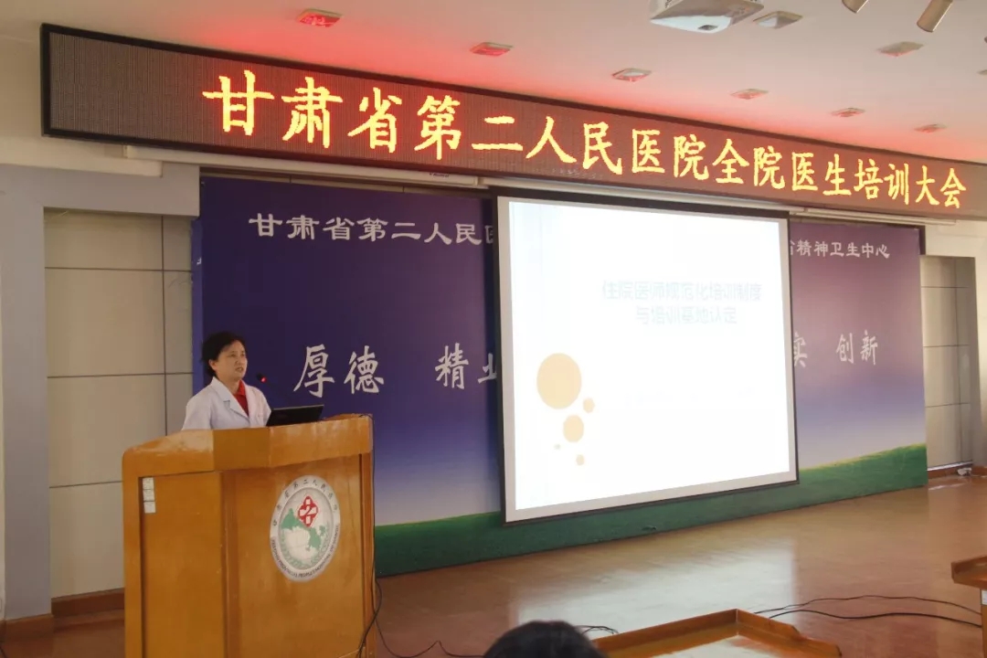 3月28日下午,甘肃省二院2019年第三期医师培训大会如期在医院门诊五楼会议室举行。院长米登海,副院长金永新、邱皓和200余名医生参加。