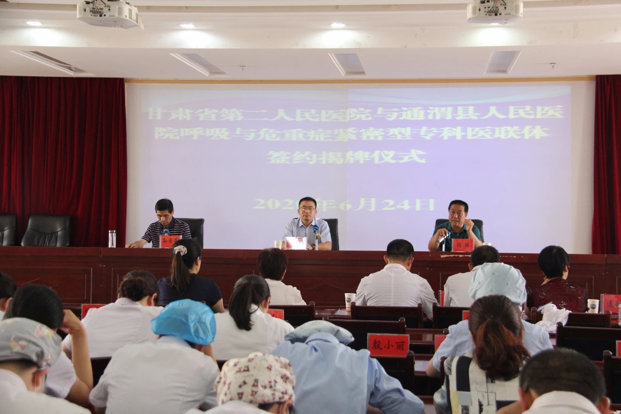 6月24日下午,甘肃省第二人民医院与通渭县人民医院呼吸与危重症医学科签署紧密型医联体战略合作协议,并举行揭牌仪式,省二院呼吸与危重症医学科主任柳小平,通渭县人民医院领导班子及其全员职工参加。