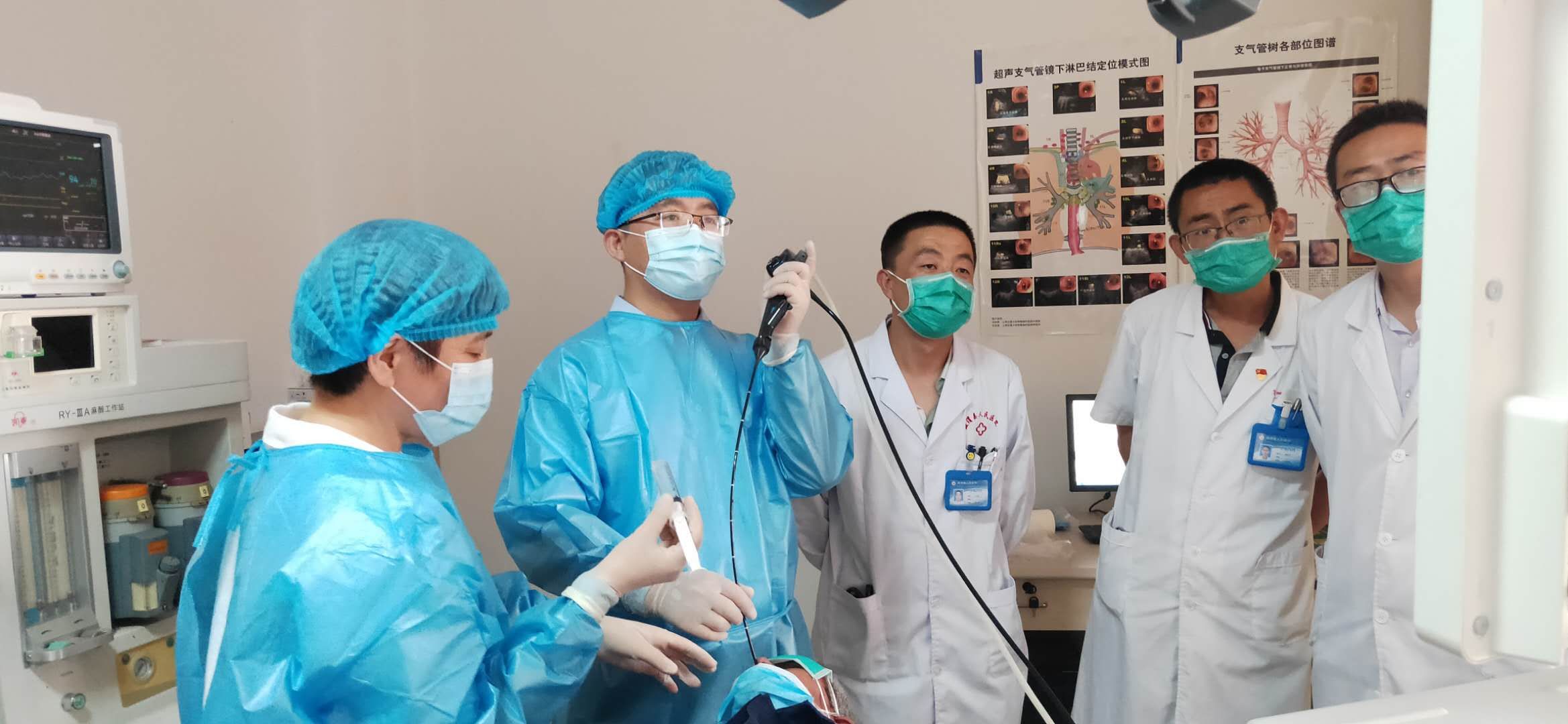 随后,甘肃省第二人民医院呼吸与危重症医学科专家们进行了学术讲座和技术帮扶活动,学术交流会上,柳小平主任以“呼吸介入诊治技术”为题,以生动的实例展现了呼吸介入诊疗技术的发展需求和应用前景,和全院医护人员分享了丰盛的学术大餐。甘肃省第二人民医院呼吸与危重症医学科马俊婷护士长深入相关科室就护理和呼吸内镜室规范化建设进行业务指导。随后,专家团队对1例可“肺部阴影”的患者行气管镜检查,对通渭县人民医院内镜团队示范指导。