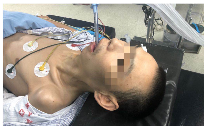 患者37岁,男性,强直性脊柱炎病史9年,近3年来病情加重后膝关节、髋关节强直无法下地活动,多方求医未果,现在患者为求系统性诊治,遂就诊于省二院骨科。由于病程较长,患者体重只有35千克,积极术前多次输血改善营养状况后,拟行在椎管内麻醉下行全髋关节置换术。经麻醉科术前访视患者后评估,患者腰椎间隙融合,无法行椎管内麻醉,决定改用全身麻醉。患者张口度只有1.5横指,龅牙小下颌畸形,舌体肥大,颈部强直,不能后仰及左右活动,属于典型的 困难气道,为了保证患者生命安全,又能有理想的麻醉效果,经麻醉科术前讨论后,决定为患者实施清醒气管插管下全身麻醉。