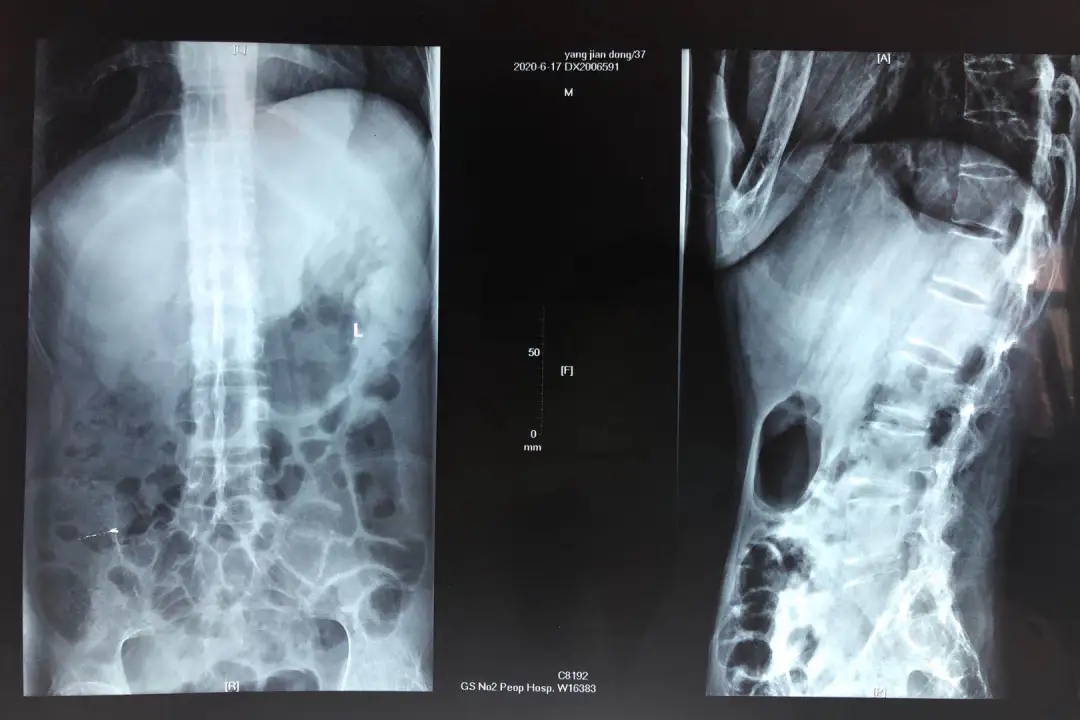 患者37岁,男性,强直性脊柱炎病史9年,近3年来病情加重后膝关节、髋关节强直无法下地活动,多方求医未果,现在患者为求系统性诊治,遂就诊于省二院骨科。由于病程较长,患者体重只有35千克,积极术前多次输血改善营养状况后,拟行在椎管内麻醉下行全髋关节置换术。经麻醉科术前访视患者后评估,患者腰椎间隙融合,无法行椎管内麻醉,决定改用全身麻醉。患者张口度只有1.5横指,龅牙小下颌畸形,舌体肥大,颈部强直,不能后仰及左右活动,属于典型的 困难气道,为了保证患者生命安全,又能有理想的麻醉效果,经麻醉科术前讨论后,决定为患者实施清醒气管插管下全身麻醉。