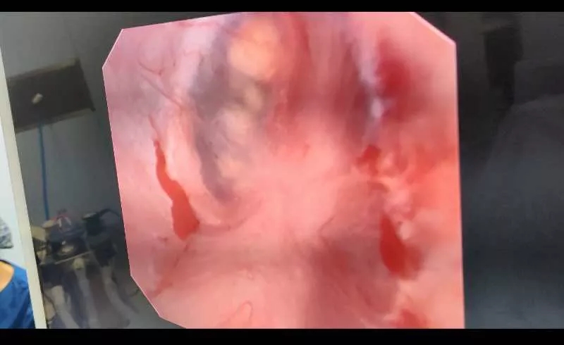 赵立明主任使用钬激光将包裹在结石外的黏膜打开后,进行长脉宽粉末化碎石,术后患者病人安返病房。