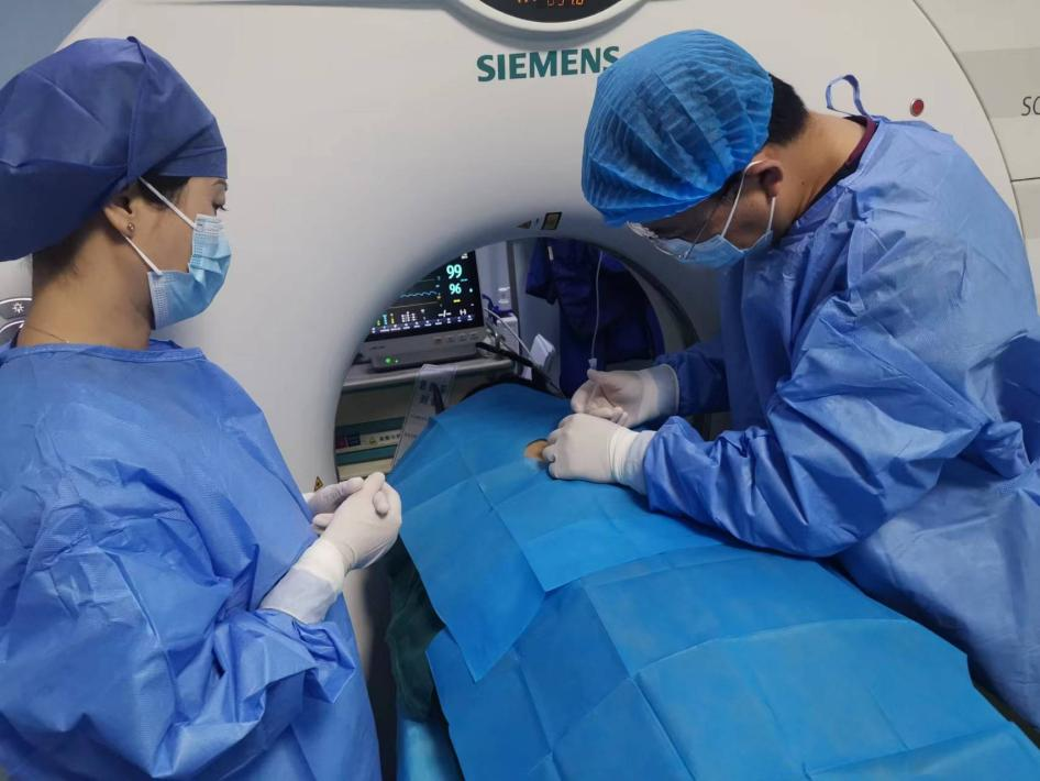 患者赵某某,女,32岁,1年前因腰部疼痛,确诊肺腺癌伴腰椎转移,口服分子靶向药物治疗1年后,原发病灶明显进展,经柳小平团队为患者进行全身肿瘤评估后成功实施我省首例影像引导下经皮复合式冷-热消融微创介入治疗。与传统的外科手术治疗、放射治疗、药物治疗等相比,新技术具有创伤小、疗效明确、安全性高、患者恢复快、操作相对简单等特点。